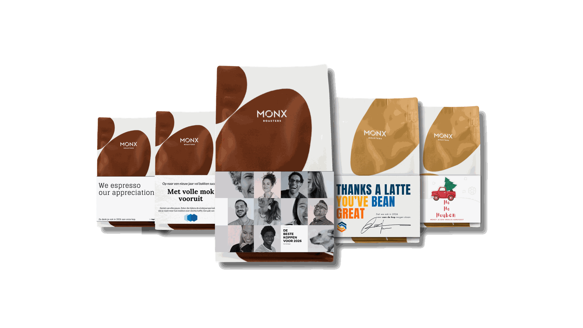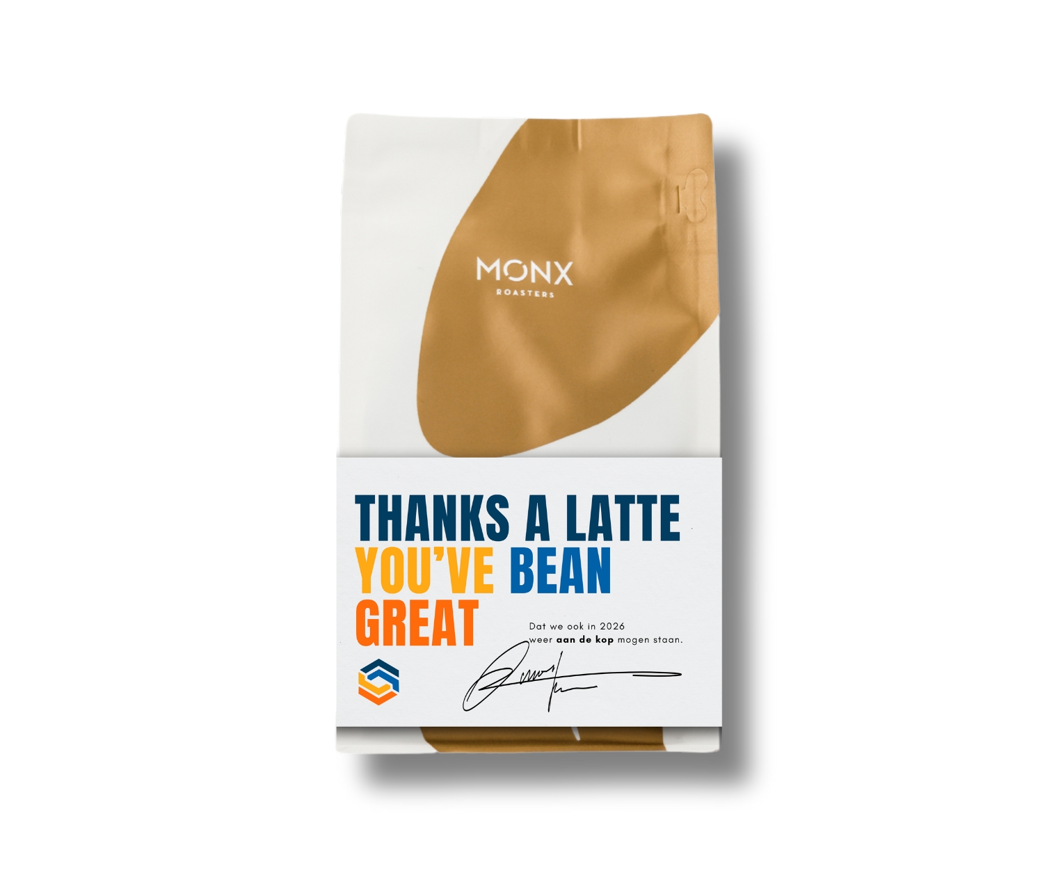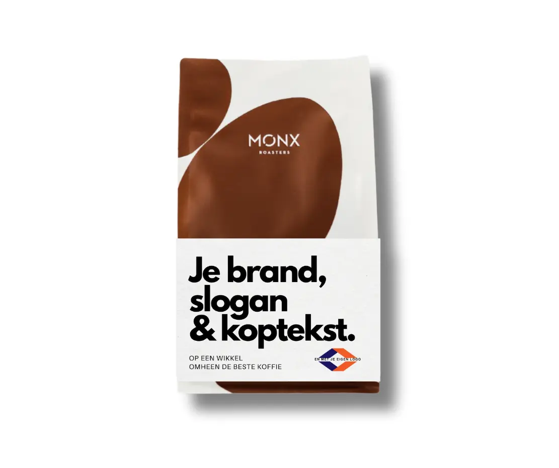Geef een zakje van de heerlijke Monx blends mét gepersonaliseerde sleeve: ideaal om je eigen boodschap of branding stijlvol te laten spreken. Een origineel gebaar dat zoveel meer zegt dan 'we hebben een boon voor je'.